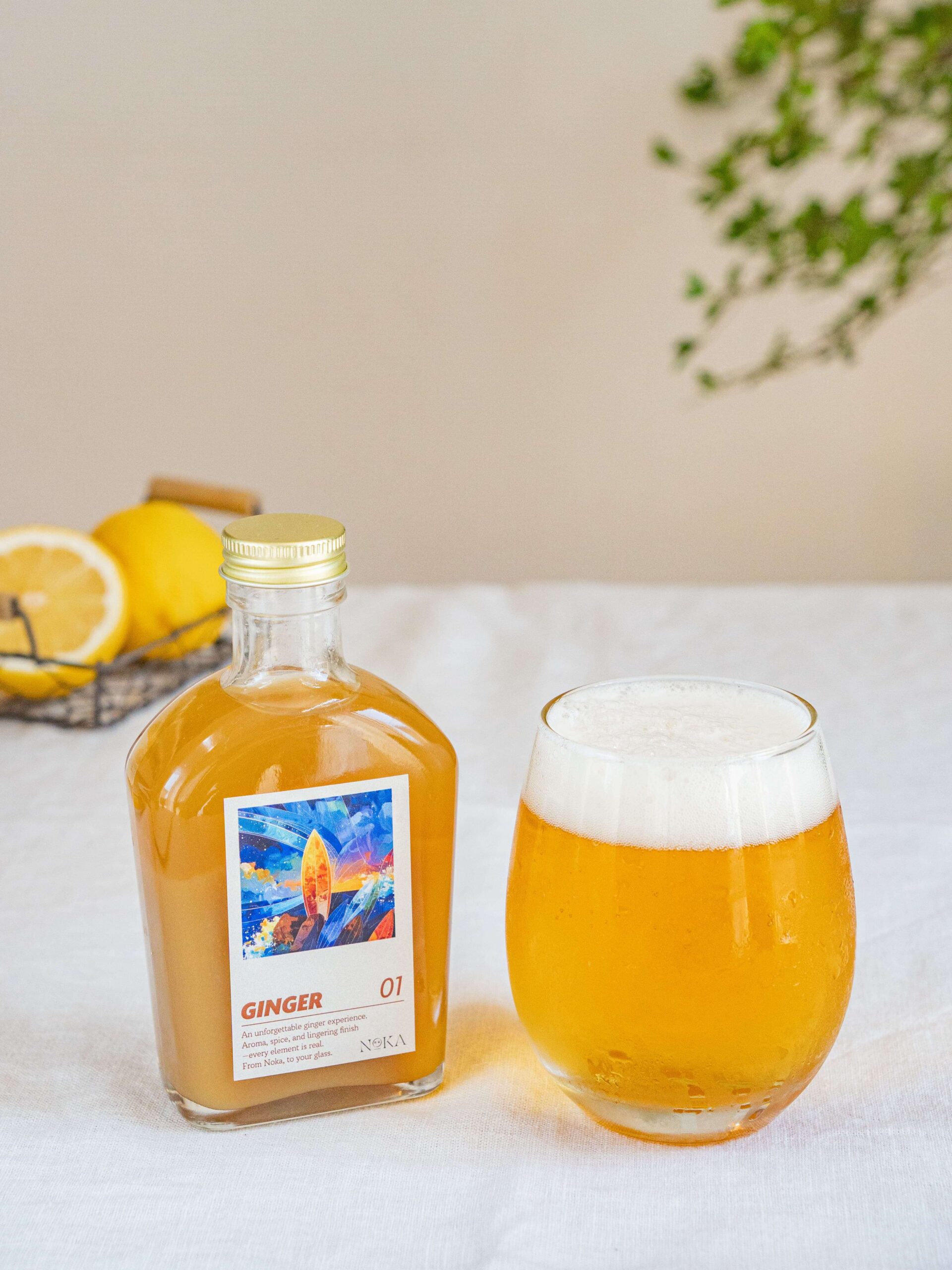 NoKa飲香のジンジャーシロップは、そのままのソーダ割りはもちろん、ジンジャーハイボールやシャンディガフ、ジンジャーブレッドラテ、ホットジンジャーなど多彩なドリンクメニューにご活用いただけます。